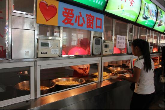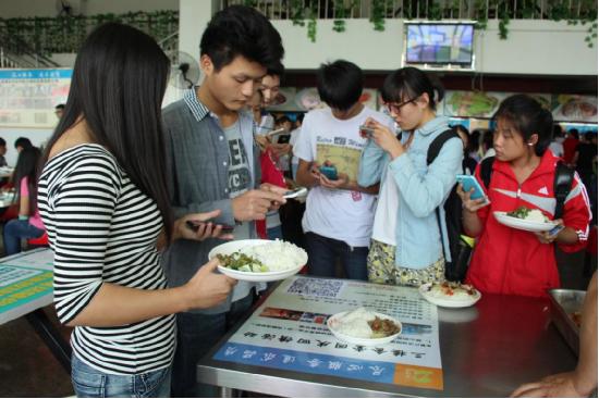 食堂定期舉行回饋活動,圖為“掃微信送雞腿”活動現(xiàn)場。